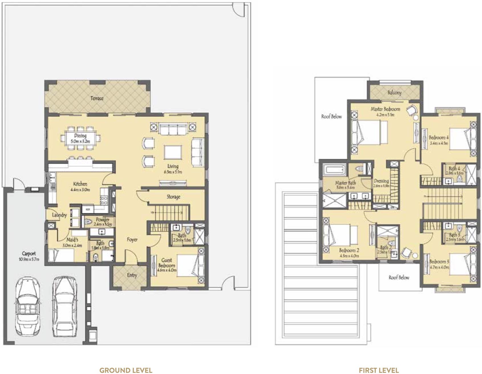 Villas in La Quinta feature Mediterranean interior and architecture design. Each unit has spacious living and dining rooms, a kitchen fully-equipped with modern appliances, a maid’s room, a storage, a laundry. In addition, each villas have a terrace and a balcony overlooking.