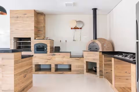 Gourmet annex with barbecue, wood-burning oven, and pizza oven.